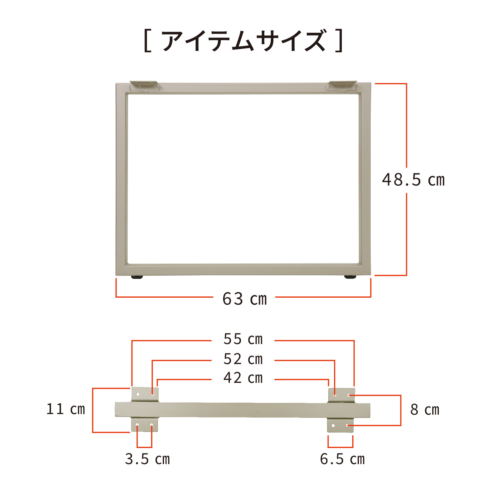 サイズ:高さ48.5㎝×幅フレーム4㎝(金具部含み11㎝)×奥行63㎝