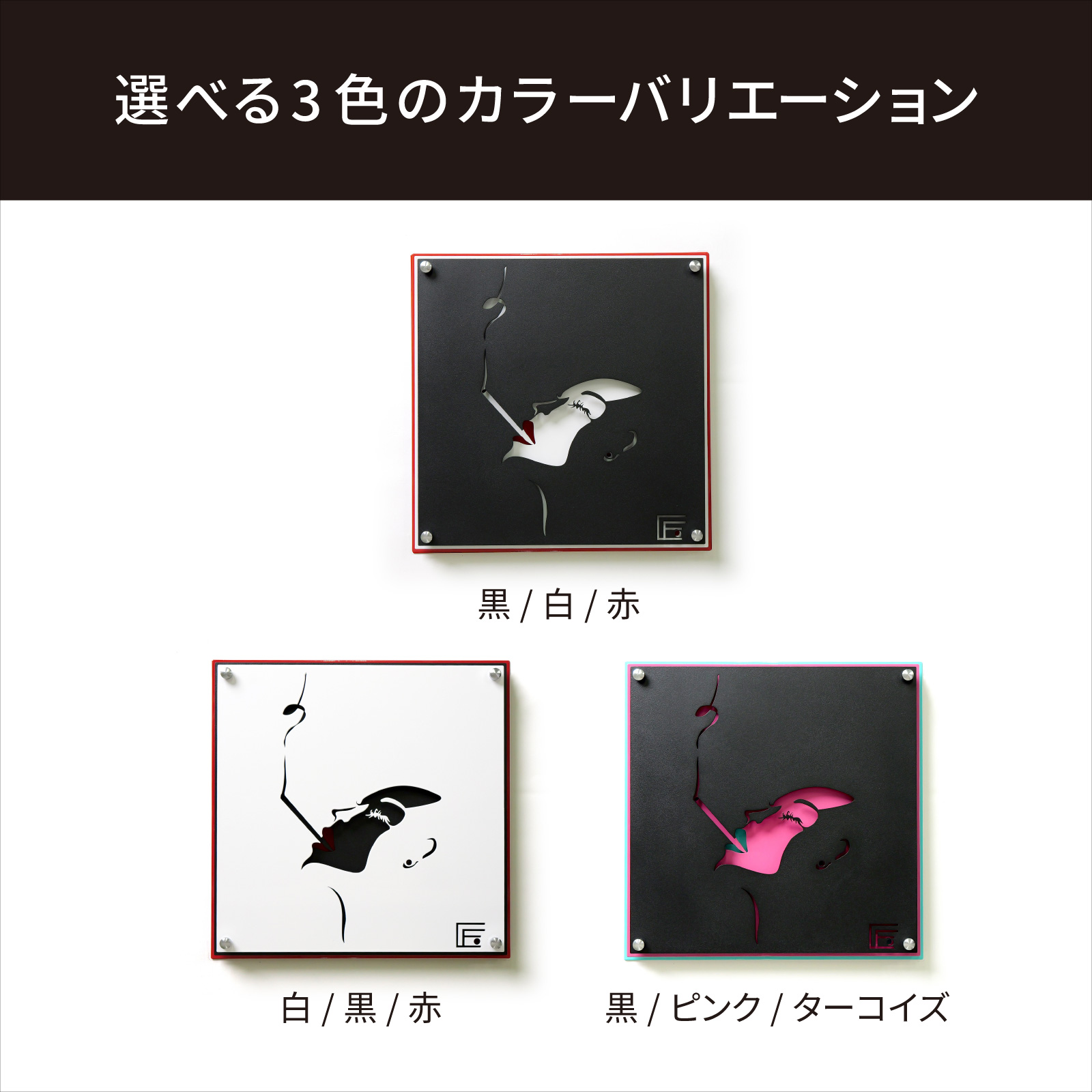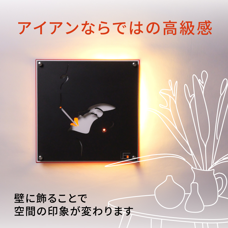岐阜鉄の匠 【国産/日本製】 鉄脚 スチール アイアン ウォールデコ 壁飾り 壁掛けアート作品 Smoking Lady 3層構造 (黒/白/赤) LED光源付 撥水加工