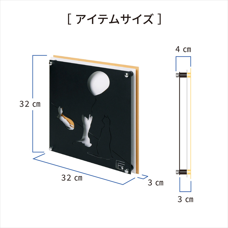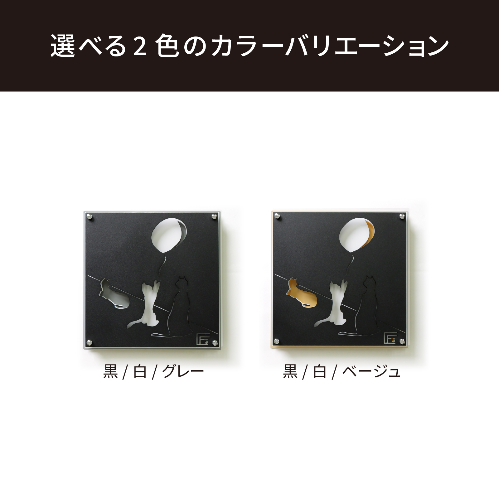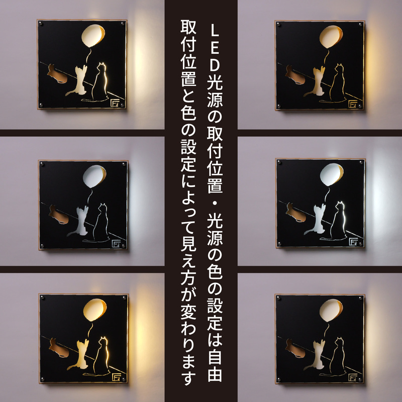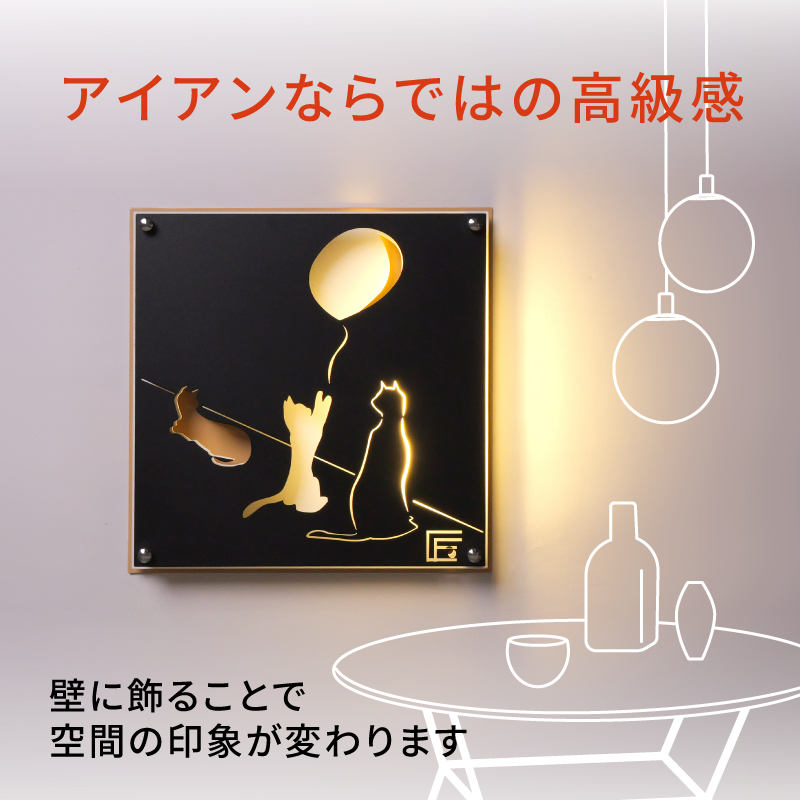 岐阜鉄の匠 【国産/日本製】 鉄脚 スチール アイアン ウォールデコ 壁飾り 壁掛けアート作品 風船と猫 3層構造 (黒/白/ベージュ) LED光源付 撥水加工