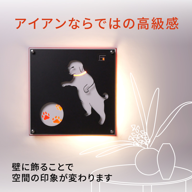 岐阜鉄の匠 【国産/日本製】 鉄脚 スチール アイアン ウォールデコ 壁飾り 壁掛けアート作品 子犬とボール 3層構造 (黒/白/赤) LED光源付 撥水加工