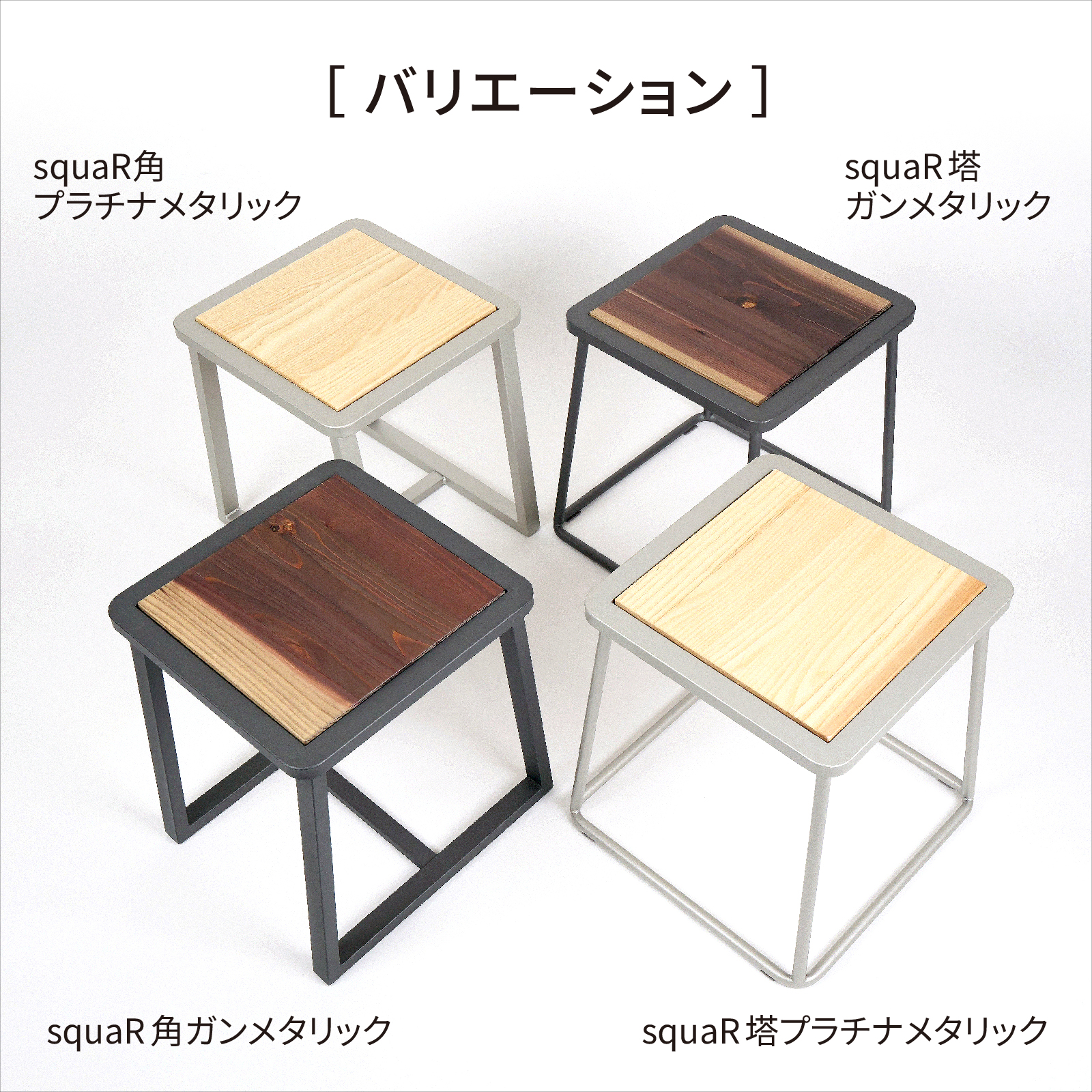 岐阜鉄の匠【国産】椅子 スツール 四角 完成品 ガンメタリック 高さ41.5×幅36×奥行40