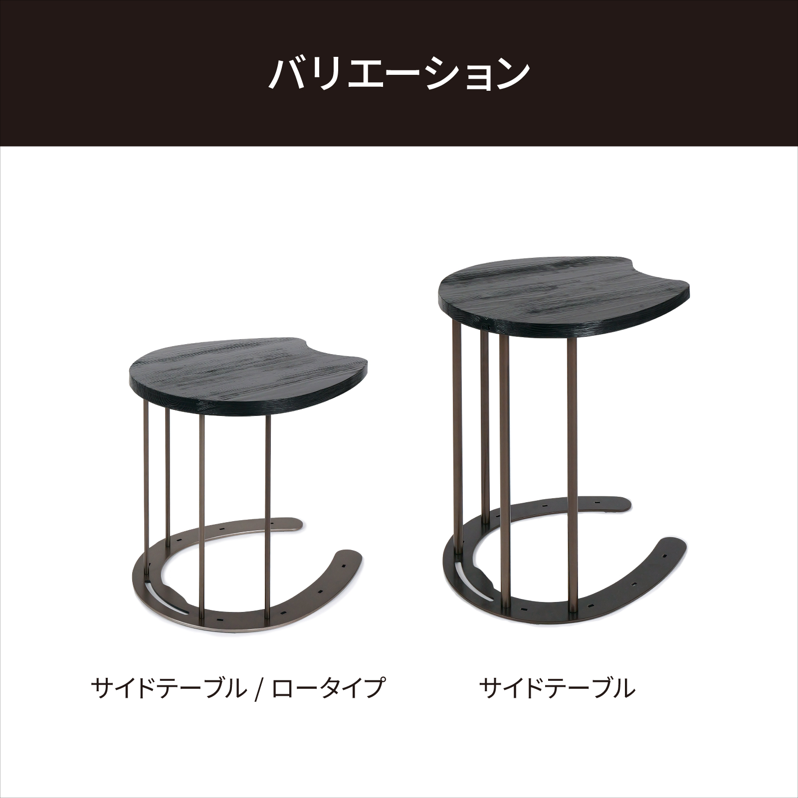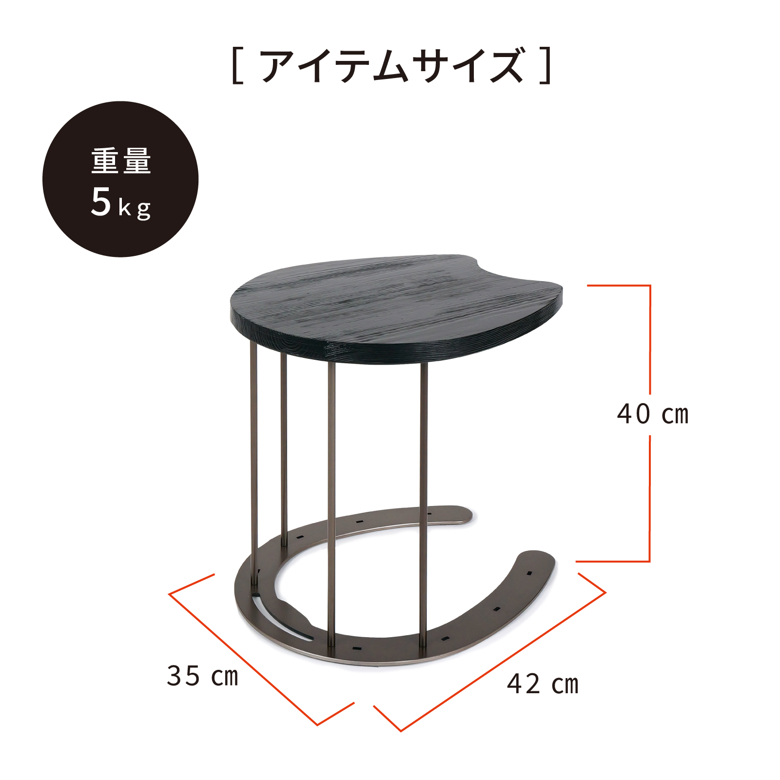 岐阜鉄の匠【国産】サイドテーブル ソファー横 馬蹄 コの字型 ベッド横 高さ40×幅35×奥行42