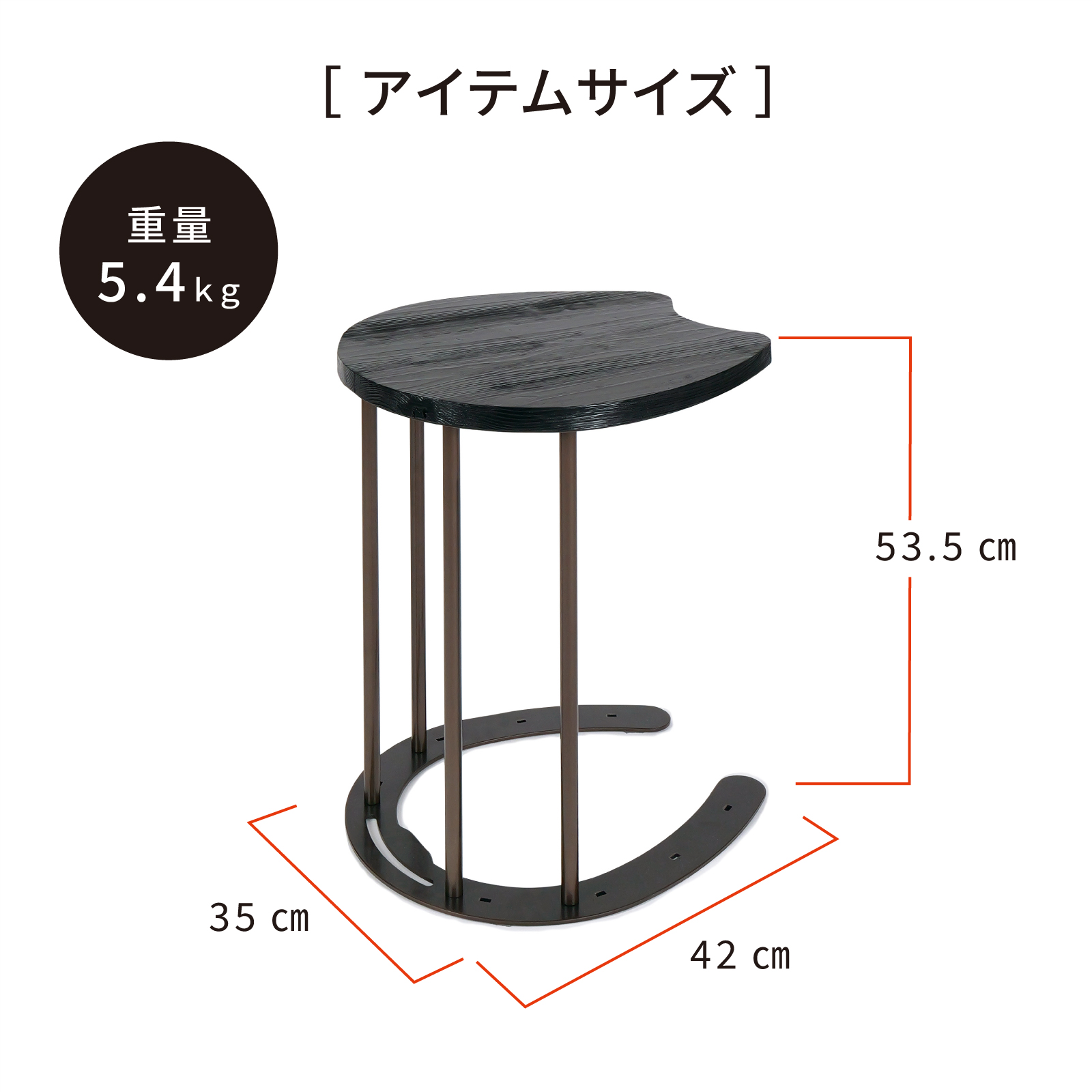 岐阜鉄の匠【国産】サイドテーブル ソファー横 馬蹄 コの字型 ベッド横 高さ53.5×幅35×奥行42