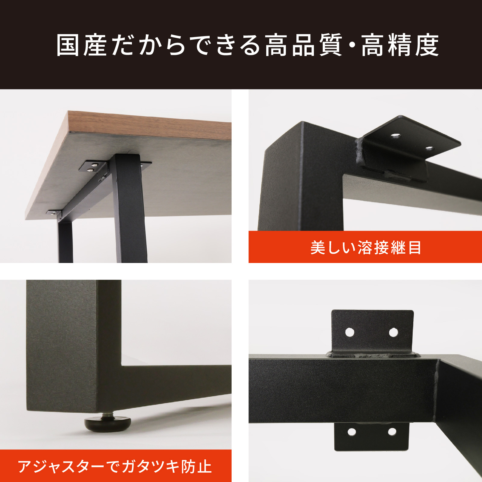 材料の仕入れから製造まで日本国内で行う「岐阜鉄の匠」がお届けする日本製の高品質・高精度のテーブル用アイアン脚(鉄脚・スチール脚)です。技術・設備・努力によって、この品質でこの価格を実現しています。