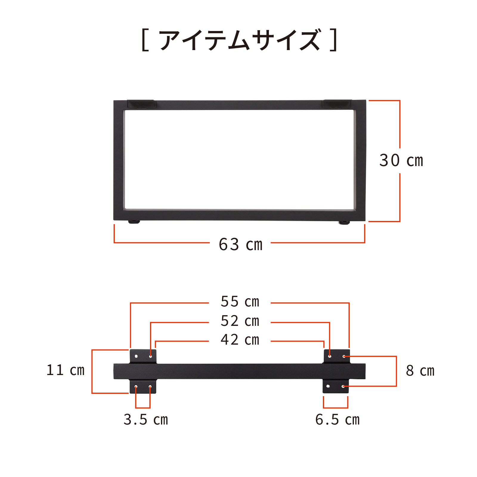 サイズ:高さ30㎝×幅フレーム4㎝(金具部含み11㎝)×奥行63㎝